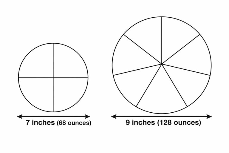 Available in two sizes: 7 Inch (68 Ounces), 3-4 servings and 9 Inch (128 Ounces), 6-8 servings